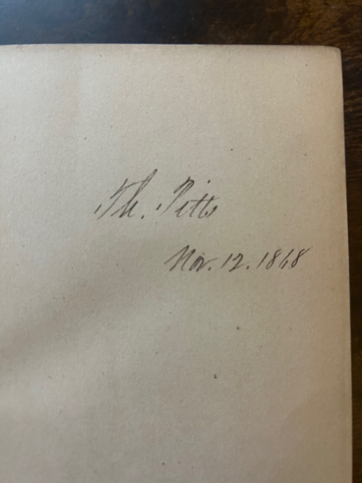 The date suggested a personal mark of ownership rather than the original purchase date—perhaps gifted, inherited, or simply the day Mr. Pitts claimed it for his library. While deeper biographical details remained elusive, the inscription added a human dimension to the artifact.